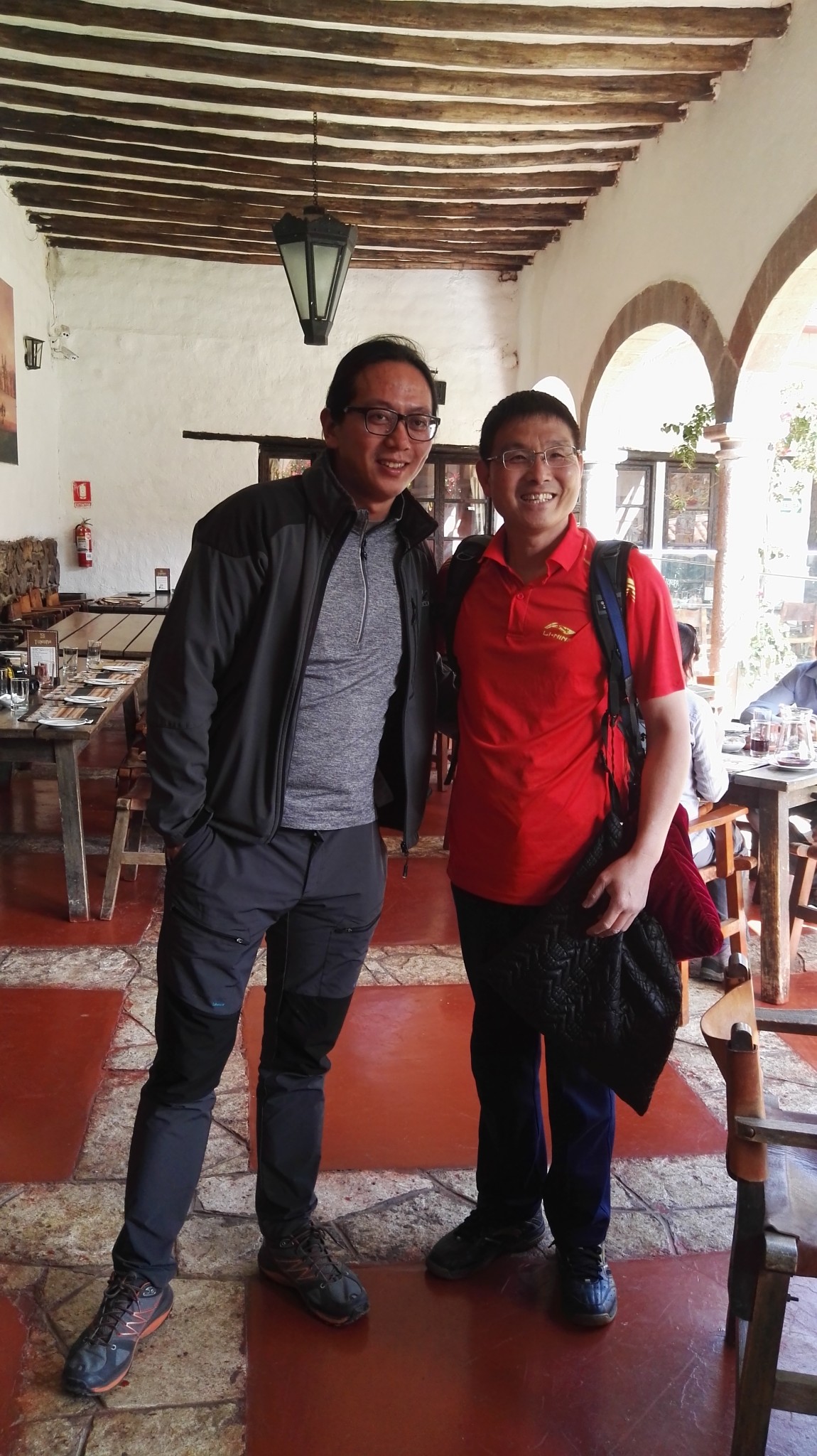 从洛杉矶起飞,经过8个小时的空中飞行,到达利马国际机场,智利航空公司LAN是南美最大的航空公司。 华为的超大广告牌悬挂在利马机场 库斯科接着飞,1个小时到达库斯科机场 库斯科导游和谷岳微笑见面 在库斯科住的酒店是秘鲁的一家知名连锁店(Casa Andina Private Collection),环境不错,早餐丰富 库斯科古城,从11世纪起为印加帝国的都城,古城位于秘鲁安第斯山脉海拔3410米的山谷中。 俯瞰库斯科古城 太阳神殿(克丘亚语Qorikancha),是库斯科和整个印加帝国最受尊敬的寺庙。 谷岳站在“自家”中间的石头上,能通过窗口看到隔壁家:) 举世闻名的萨克萨曼圆形古堡Saqsayhuaman是举行“太阳祭”的地方。 这个大石头有900吨 参观南美第二大教堂La Catedral,非常华丽庄严(但教堂里不让拍照!) 秘鲁人,怎么看都像中国云南少数民族同胞。 仙人掌果,挺甜的 谷岳在集市买可卡叶茶,嚼着可以缓解高反。 库斯科街头的女交警 在库斯科的第一顿晚餐,我们吃了一只烤豚鼠,开始很忐忑,品尝后,口感还是不错的。 南美洲,是羊驼的故乡。仅库斯科就能看到四种羊驼——羊驼、美洲驼、原驼、小羊驼,这些温顺的小精灵,在安第斯山脉生活了许久。 库斯科——皮萨克——欧雁台从库斯科出发,驱车沿着乌鲁班巴河谷(也称圣谷)行驶,途径古镇皮萨克,到达印加著名古迹欧雁台。 中午,在一个环境优美的花园用午餐(据说,此地原是一个地主的庄园。) 秘鲁是美食之国呢!不仅颜色好看,味道也不错! 没想到在遥远的南美,谷岳也被粉丝发现了,并索要合影。 这里有圣谷最雄伟的印加遗址欧雁台的太阳神殿,另外因为大多数前往马丘比丘的火车都从这里出发,很多游客都选择在这个小镇落脚过夜。 居然在乌鲁班巴一个偏避的小山村里,谷岳发现了一个僻静悠雅的小院,这也是我们到秘鲁的第二家酒店(Inti Nan Hotel)。 欧雁台——马丘比丘从欧雁台乘观光火车,前往印加最著名的古迹——马丘比丘,在高大上的车厢里,全方位尽览安第斯山美景。 到达马丘比丘脚下的热水镇 一生中必去的神奇遗址——马丘比丘,是一座“被遗忘的印加城市”。它的神秘与壮美,每年吸引着上百万人带着朝圣的心情靠近它。 马丘比丘修建在海拔约2350米的高山之巅,被称为新的世界七大奇迹之一,也是世界上为数不多的文化与自然双重遗产之一。 直上直下的天梯,让你步履维艰。 上几张谷岳的马丘比丘酷照 谷岳告你“谷”字的拼写 第二天,爬上对面的瓦纳比丘山顶,俯瞰云雾中的马丘比丘,整个图案像一只展翅的雄鹰,震撼的同时,更惊叹印加人卓越的建筑技术。 导游Carlos要跟我们说再见了! 亚马逊雨林从库斯科起飞,准备进入世界最大的热带雨林——亚马逊雨林。1个小时后,到达雨林城市马尔多纳多港(秘鲁与玻利维亚的交界处)。 秘鲁星航空公司StarPeru 当地的旅行社门市部门脸(上面有联系电话) 从港口坐船40分钟,到雨林深处。 下榻森林中的小木屋 推开房间的门,发现一只小鹦鹉在门口恭候我们的到来 还有一只小猪猪,恋着我们不肯走 雨林的午餐(芭蕉叶包鸡饭),由于条件所限,比城市的要简单。 导游在示范溜索运动 晚上,打着手电找凯门鳄,体积很小,大约一尺长。 第二天,当地向导带领我们负重徒步3公里穿越雨林。 途中看到庞大的行军蚁队伍往洞穴里搬树叶。 雨林保持着原始生态,各种稀奇古怪、茂密生长的热带植物。 亚马逊雨林更是动物们的天堂。各种鸟类栖息在树上,水獭、乌龟在懒散的晒太阳,而僧帽猴却活跃的跳来跳去...... 拜访雨林深处的印第安人家庭,丛林中定居有南美原住民Quechua克丘亚人。 我们要离开了,小男孩儿一直送我们到河边,依依不舍....... 谷岳躺着钓食人鱼,估计是钓不上来了。 谷岳说,他很享受这种宁静。